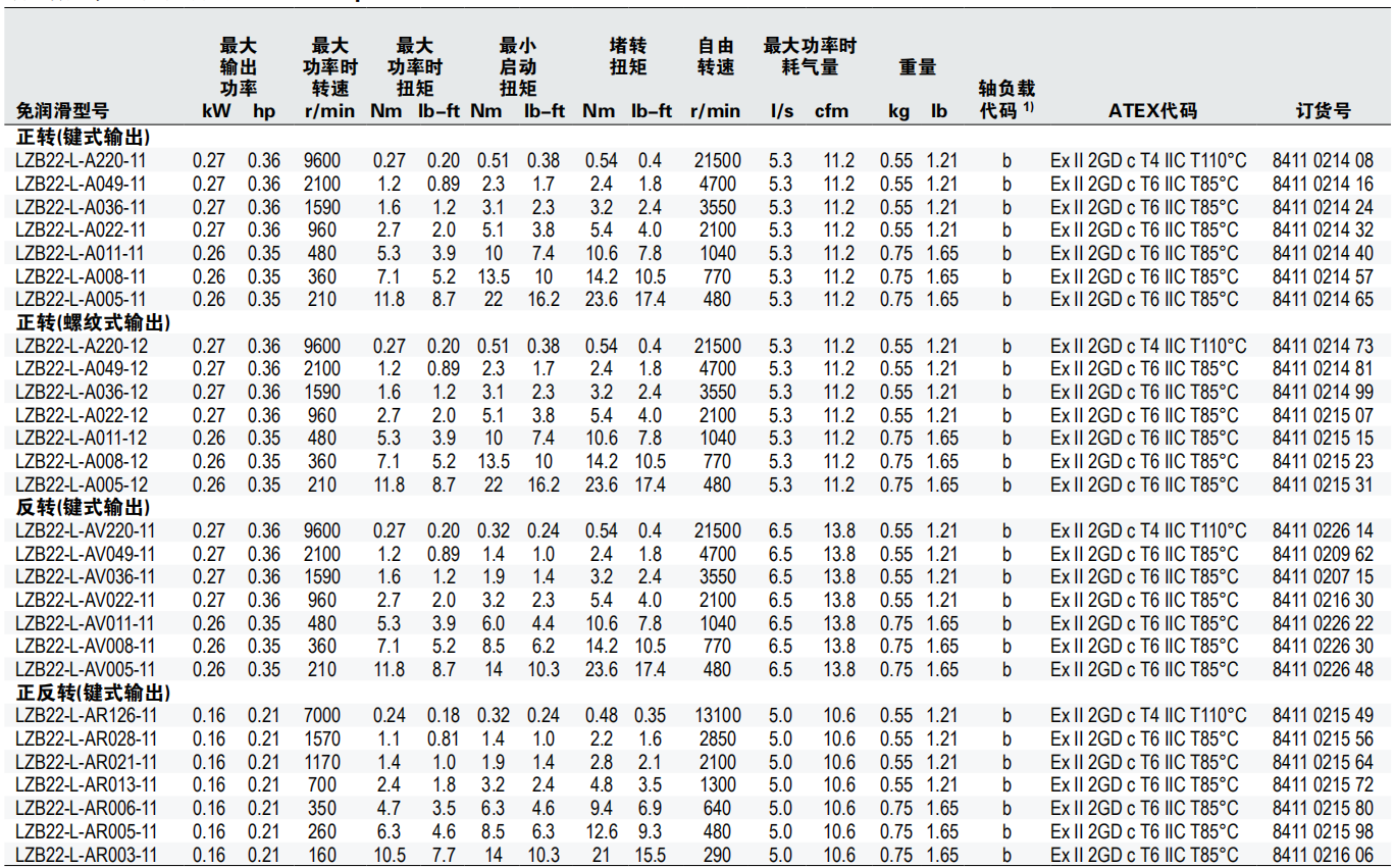 ATLAS COPCO LZB22-L系列免润滑气动马达