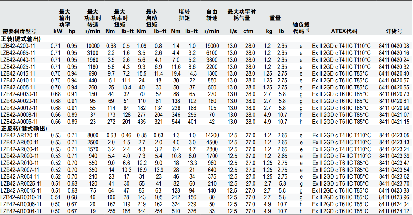 ATLAS COPCO叶片马达 LZB42系列免润滑气动马达