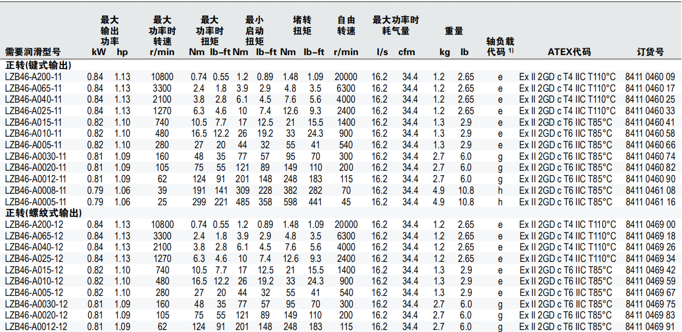 ATLAS COPCO叶片马达 LZB46系列免润滑气动马达
