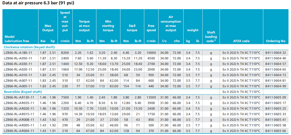 ATLAS COPCO 叶片马达 LZB66-RL系列不锈钢系列免润滑气动马达